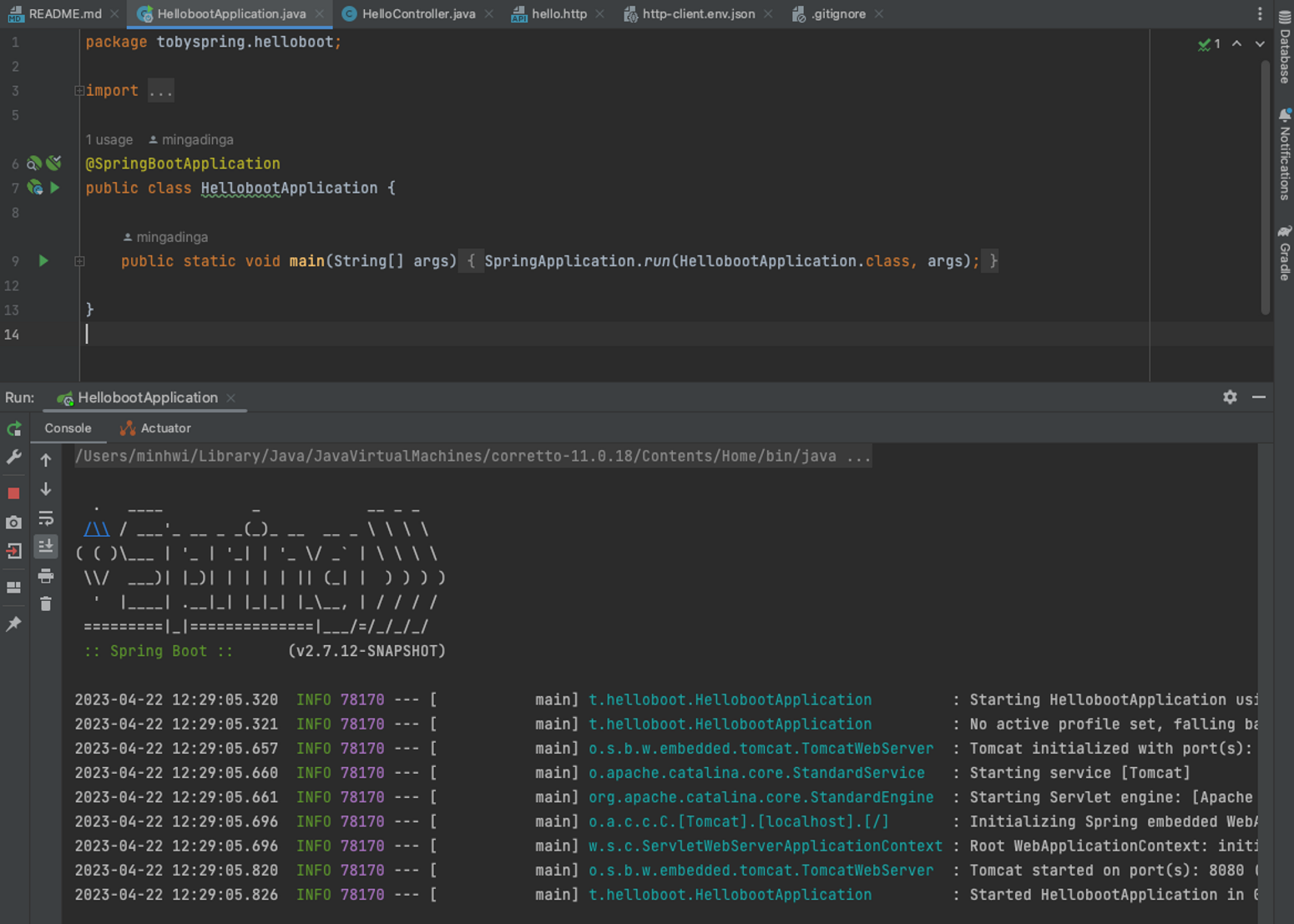 SpringApplication.run(HellobootApplication.class, args);