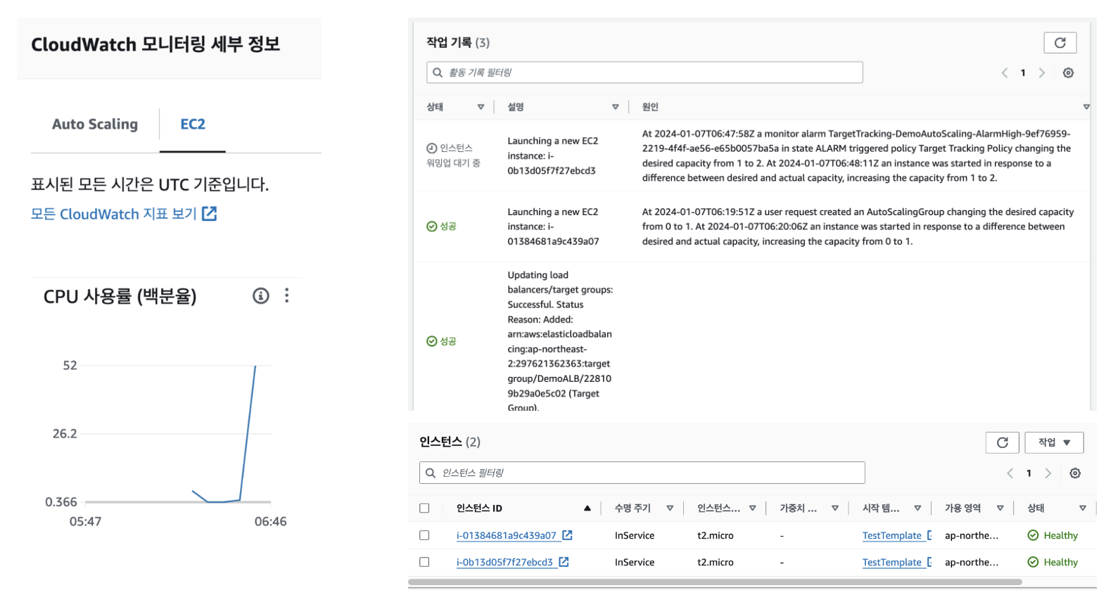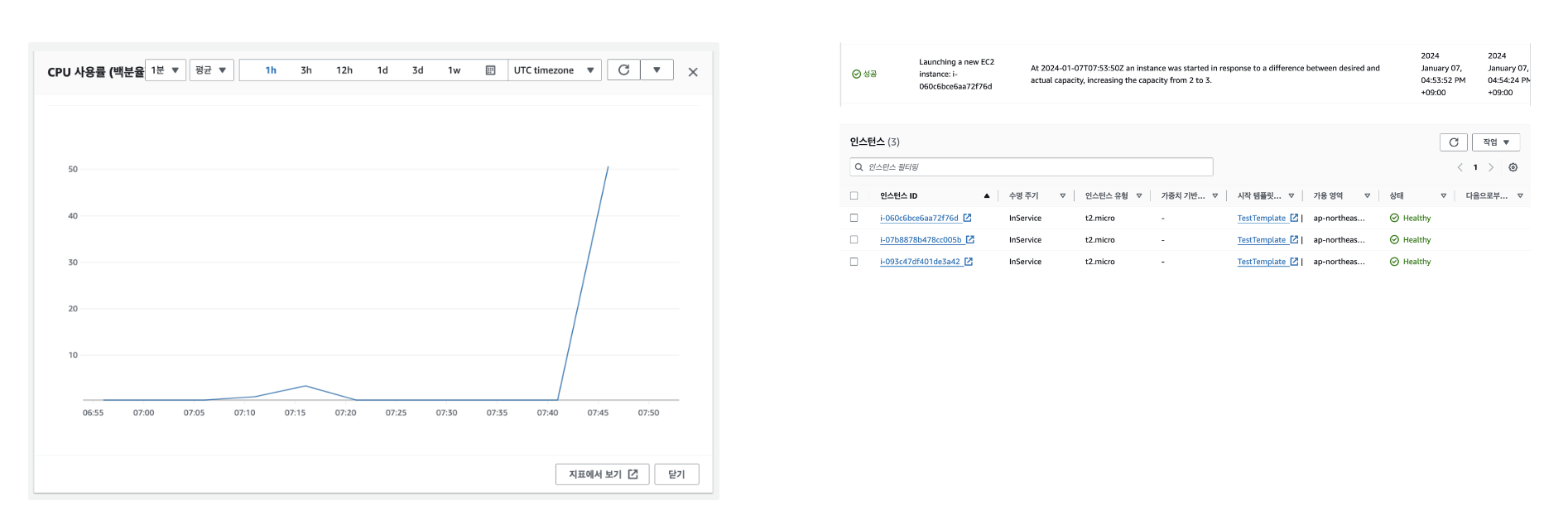 50%보다 높게 튀어서 인스턴스가 두개 추가된 것을 확인할 수 있다.