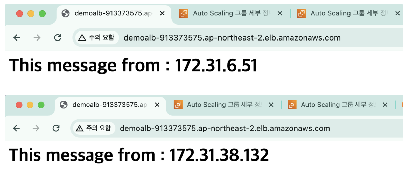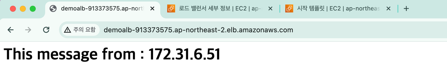 public ALB 동작 확인 (DNS 이름으로 접속)