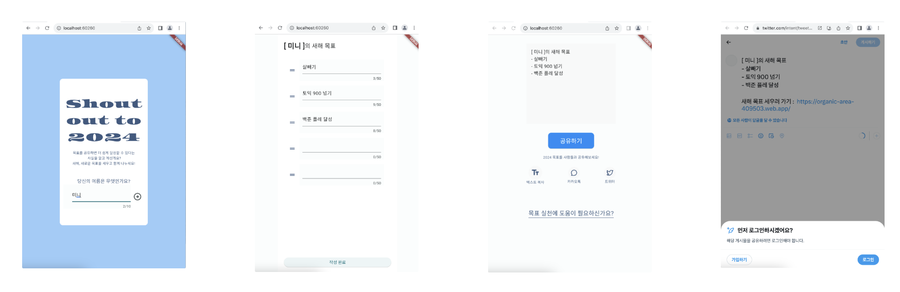 간단하게 이름과 목표를 작성하고, sns에 공유하는 앱이다. 엄청 간단하다.