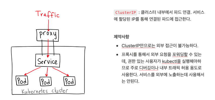 - 서비스의 종류에 따라 파드에 접근할 수 있는 방법이 달라짐