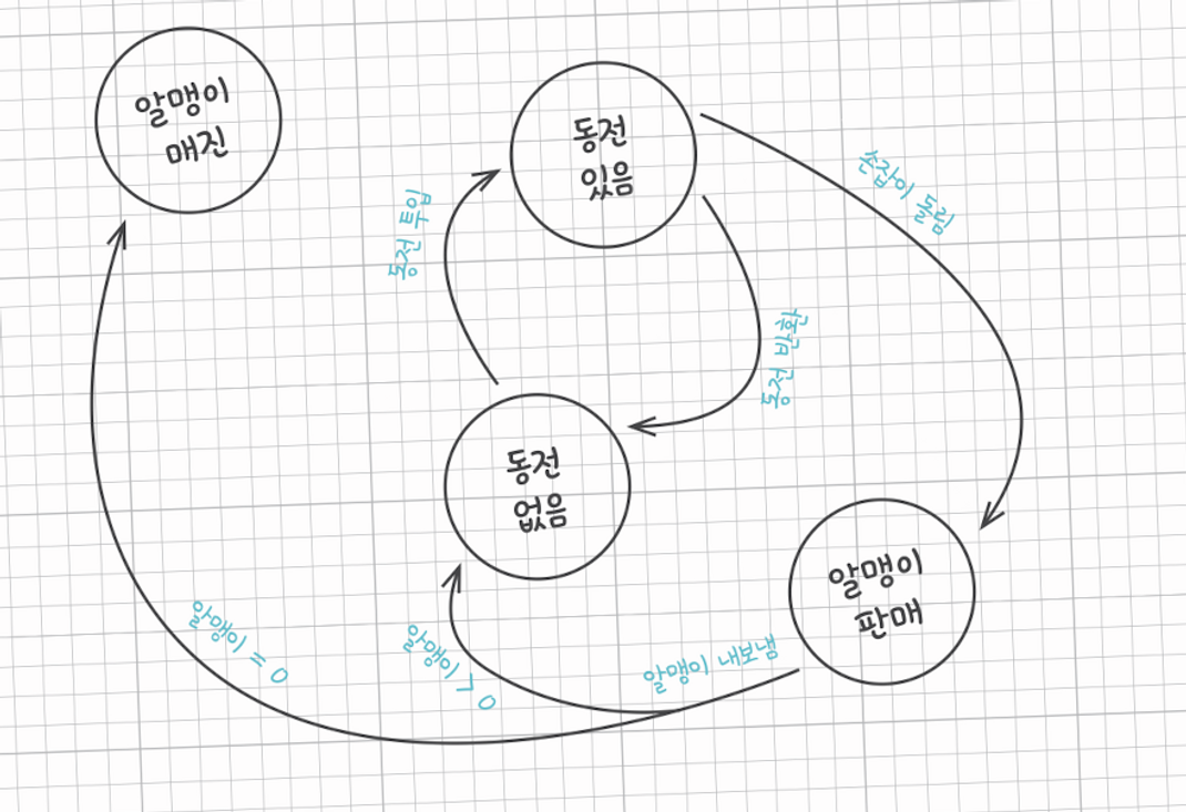 다음과 같은 상태 기계를 가지는 뽑기 기계를 구현한다.